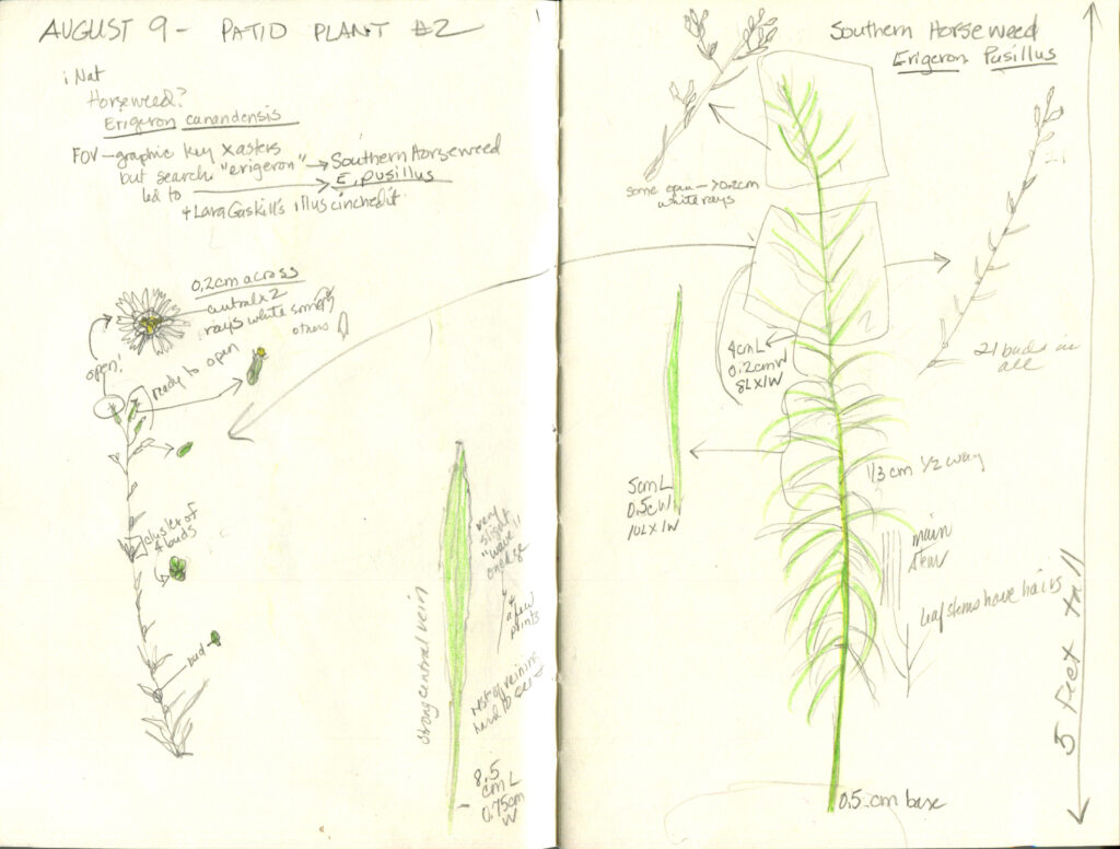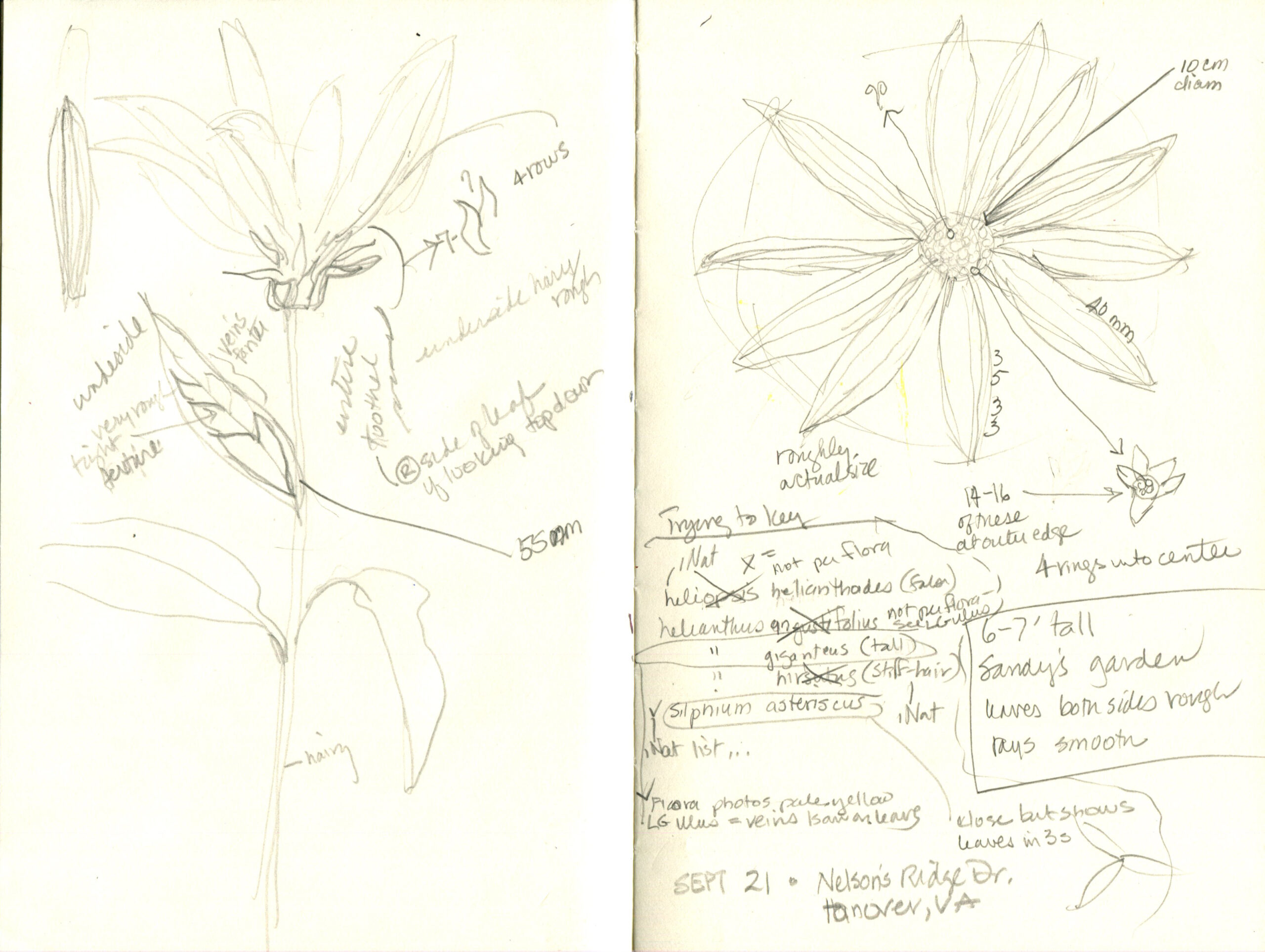 My name is Eleanor Harris and I am one of the Co-Directors of the Clifton Institute, a nature center and research field station in Warrenton. I am a naturalist, educator, scientist, and nature journaler. I use the Flora App in all of those roles, but I especially love using it while I’m nature journaling. By nature journaling, I mean writing and drawing in order to learn about nature. I love documenting new-to-me plant species in my journal and one of my favorite things to do is to work through a dichotomous key in the App and illustrate questions as I go. Using a key and drawing both make me look more closely at the plant than I otherwise would, and drawing the steps of a key creates a lasting memory of how to identify the plant in the future. Not every state is so lucky to have an App like the Flora and I feel really lucky that I have access to such an incredible tool for learning about and appreciating Virginia flora.